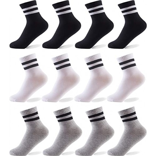 Black,white,grey Boys Socks 12 Packs Fit for 2-12 Years Old Boys and Girls Cotton Athletic Ankle Socks for Toddler Kids and Big Kids